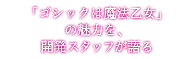 「ゴシックは魔法乙女」というタイトル、本当はどう思ってますか?とてもケイブらしくて、良いと思います。当初の候補案にはもっと普通っぽいのもありましたが、社長に「俺はいいけど、ケイブは何て言うかな?」みたいな話になり、しまいには「は」がいいのか「が」がいいのかとか変なところでもめたりしましたが、最終的にいい形になりました。