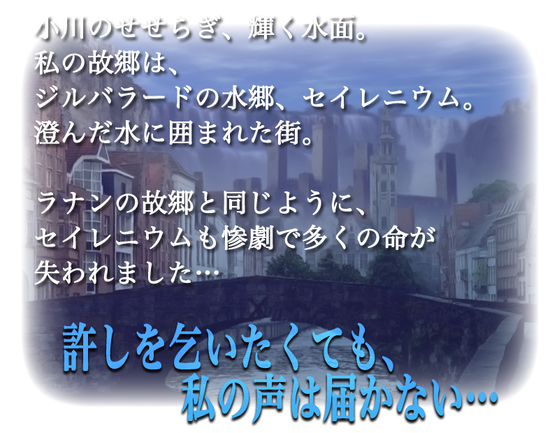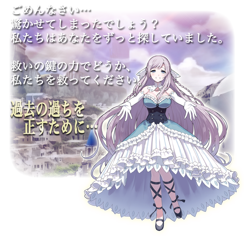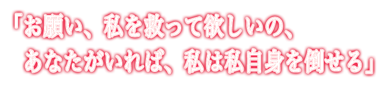 マスター、 私たちはあなたを探していました。 救いの鍵…私たちの最後の希望。 私の望みは、この災いを討ち果たして、 この街に静穏を取り戻すこと… そのために… あなたの力を貸してください。 渇いてしまった私を、 あなたにうずかせて欲しいの。